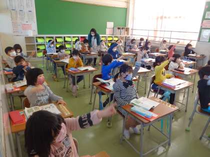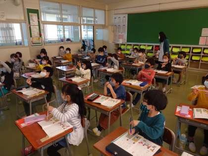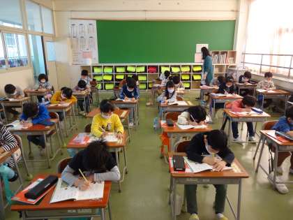 みんなで「空書き」してから、鉛筆で書いて練習しました。鉛筆の持ち方も確認しています。