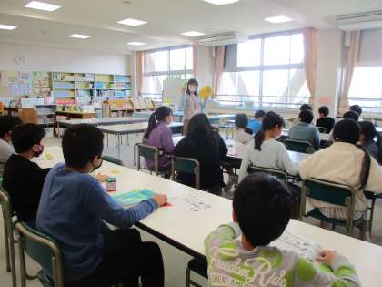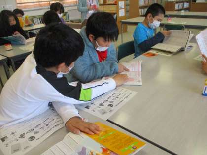 司書の先生から、本の取り扱い方や学習で使う方法を教えていただきました。その後に、一人一人がミッションをもらい、全員が辞典を使ってミッションを達成することができました。