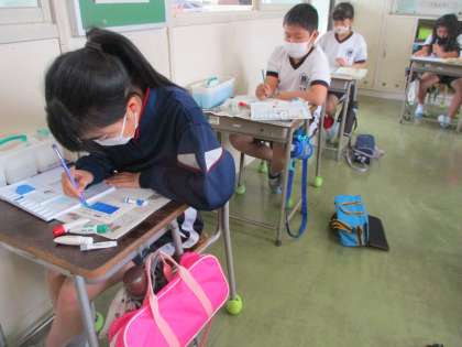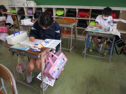 パレットの使い方や絵の具の使い方を工夫して、白色の分量に気をつけながらグラデーションをの描き方を学習しました。
