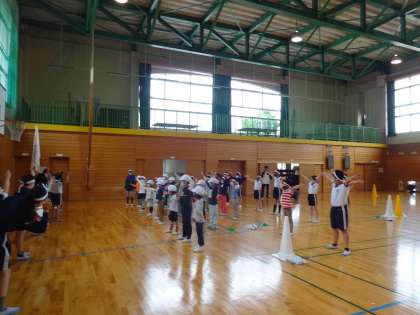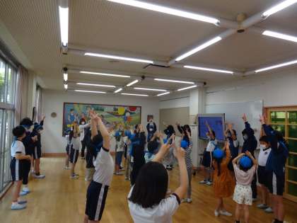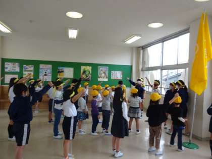 6年生が考えた応援を、1〜5年生に一生懸命に教えました。いよいよ、運動会の応援練習(全校)が始まりました。