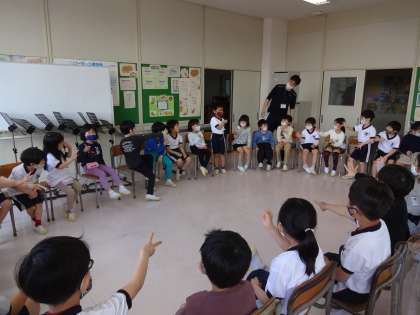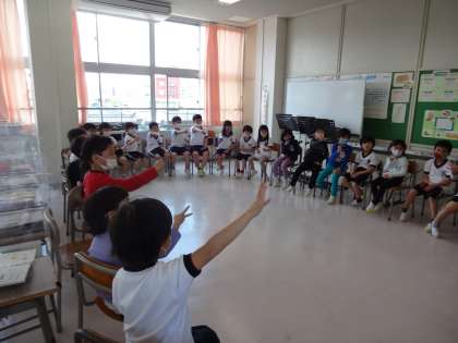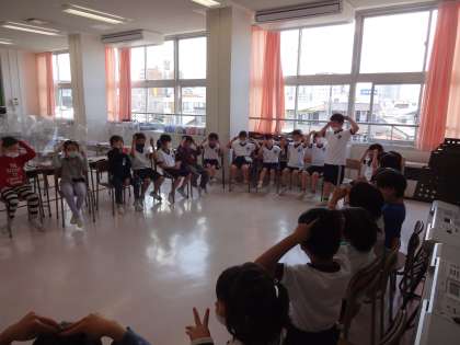 拍に乗って、動作を入れながら「じゃんけんぽん」を楽しく歌いました。