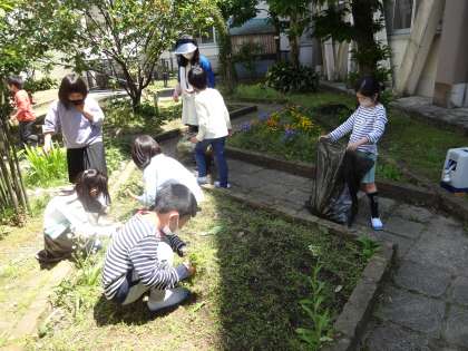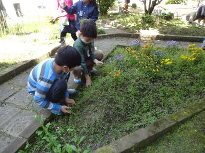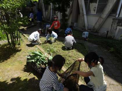 中庭にある花壇の除草をしました。一生懸命に取り組み、たくさんの取った草を見せに来た子供が何人もいました。