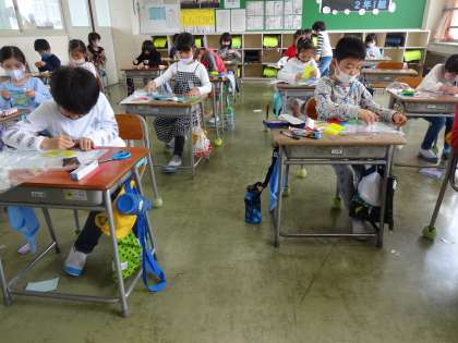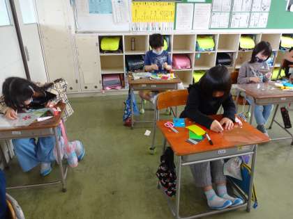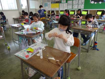 図画工作科で「ひかりのプレゼント」を製作中です。