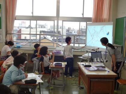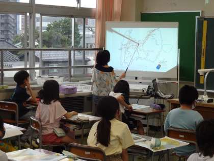 富山県地図を開きながら、県内の交通の様子を学習しました。