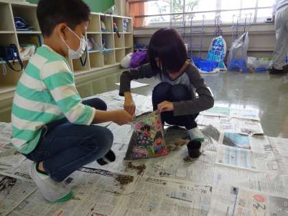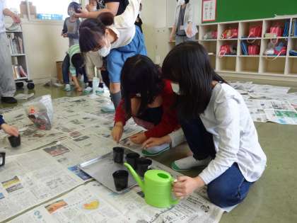 先日、観察した種を植えました。ヒマワリ、オクラ、ピーマン、ホウセンカ等、人によって植える種は違います。