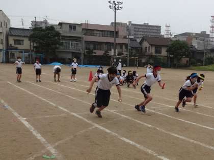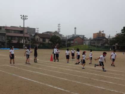 運動会で行う要領で、リレーをしました。これまで練習してきたことに気を付けてバトンパスをしました。