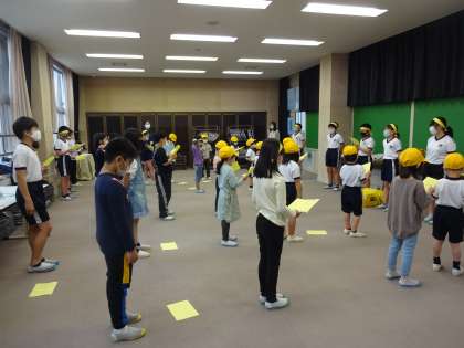 今週のさわやか集会も、各色団ごとに分かれて、運動会の応援練習を行いました。