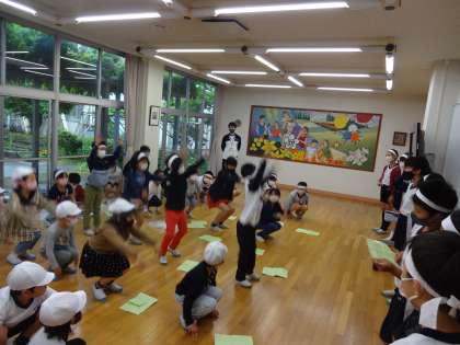 6年生は、アイディアを出し合って応援を作り続けており、新しい練習内容も加わっています。