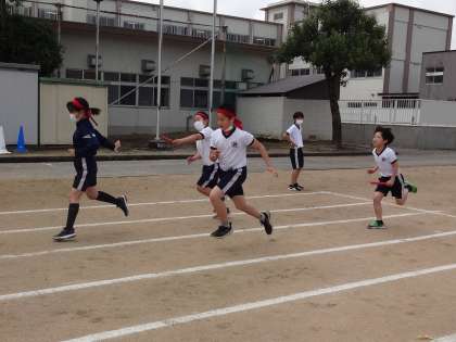 これまで、5・6年生合同でバトンパス練習をしてきました。さすがは高学年。格段に技能が向上しています。