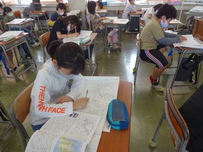 4年生の社会科の学習では、「きょう土のすがた(副読本)」や「富山県白地図」を活用しています。