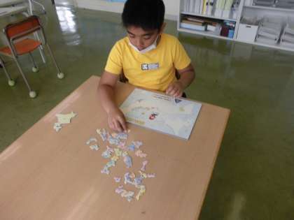 日本地図パズルに挑戦しました。都道府県の名前と場所をしっかりと覚え、素早くパズルを完成させることができました。