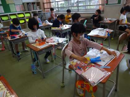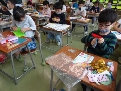 「ちょきちょきかざり 〜チョッキンパッでかざろう〜」の学習の様子です。