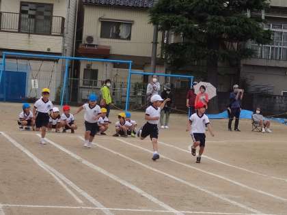 プログラム4番は、1年生の50m走でした。子供たちにとっては、初めての運動会。張り切って走りました。