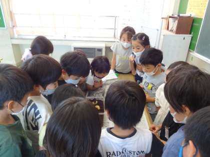 今日は、カブトムシの幼虫を観察し、カブトムシの一生を学習しました。
