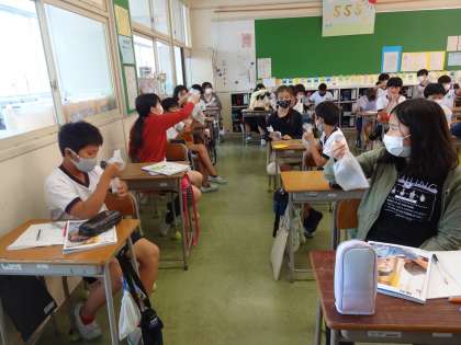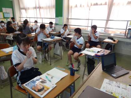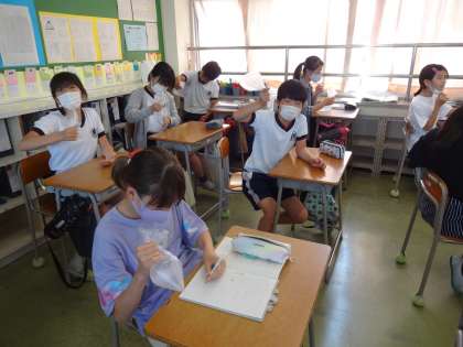 理科の授業で、はき出した空気は吸う空気と違うか実験しました。