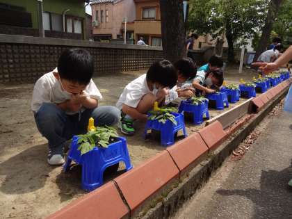 世話をしながら、アサガオの様子を観察する姿も見られました。