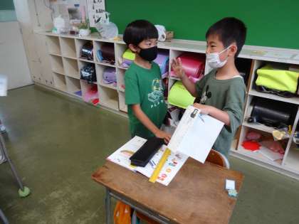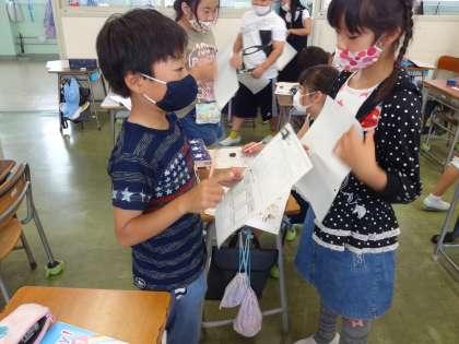 私の好きな漢字をワークシートに書きました。次に、ペアを見付け、好きな漢字を紹介し合いました。そのときに、英語で、漢字の画数を質問したり答えたりしました。