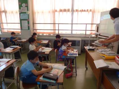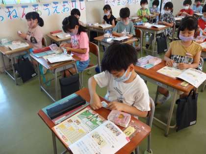 カードの使い方を先生から教わり、カードをめくりながら順番に計算しました。