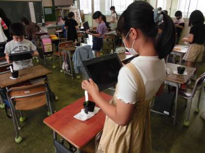 ヘチマの芽の観察をし、クロムブックで写真を撮りました。いろいろな角度から上手に写真を撮ることができました。