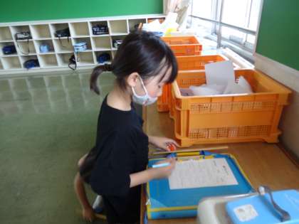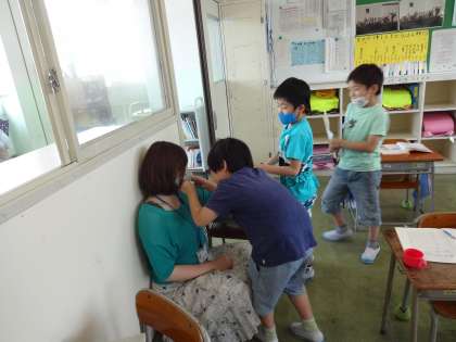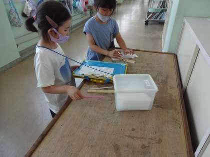 ものさしで長さの測り方を学習した子供たちは、身の回りの物の長さを測りました。