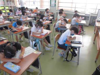みんな絵を見ながら一生懸命考えて、意欲的に発表しました。