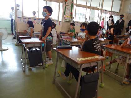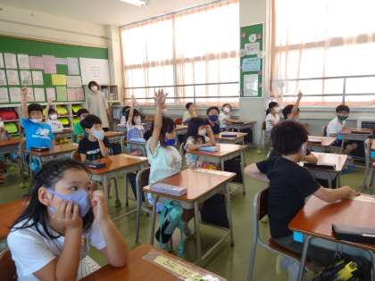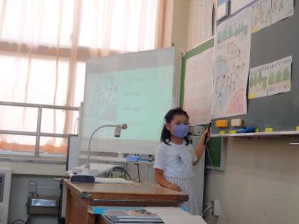 絵をよく見ながら4+3の式になるお話を考え、発表しました。