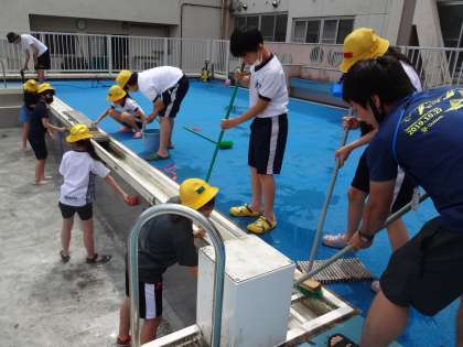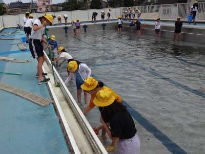 5・6年生の子供たちは、2限〜3限にかけて、プール清掃を行っています。