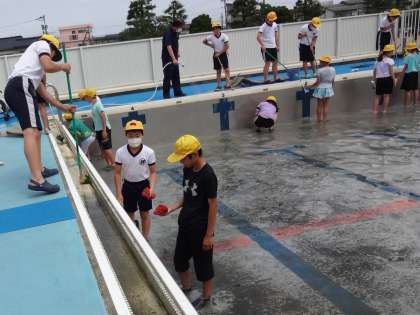 コロナ禍のため、昨年度は水泳学習はできませんでしたので、2年間分の汚れを取っています。