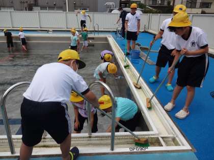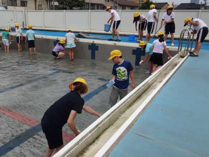 子供たちの活躍により、プールがどんどんきれいになっていきます。