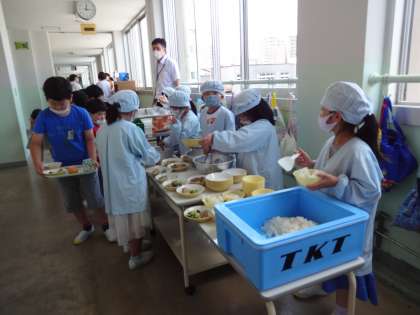 5分間早めに、給食準備に取りかかりました。自分たちで、配膳できます。