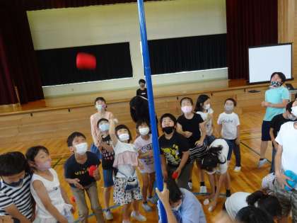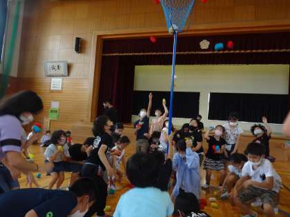 6年生は、全校児童が楽しめる時間をつくるために、各色団の親睦をさらに深めるために、色団対抗の玉入れを企画・運営しました。