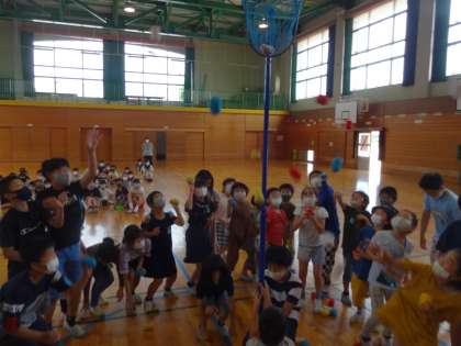 写真は、青団の様子です。37個入れました。この時点では、他の団を10個以上も上回り、1位となりました。