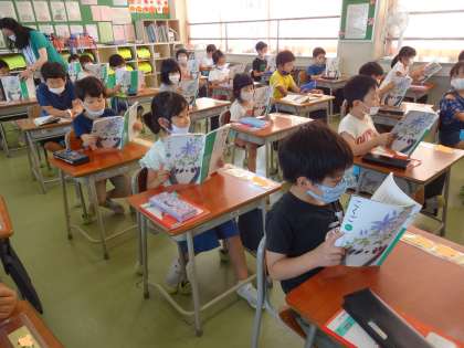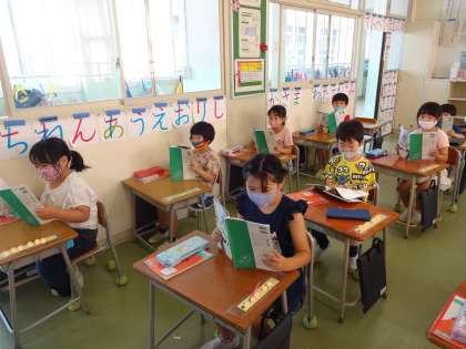説明文「くちばし」を列ごとに音読しました。声の大きさ、読む速さ、声質等に気を付けながら元気よく発声しました。