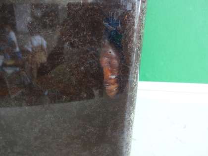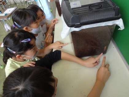 すでに幼虫は、蛹(さなぎ)になっています。虫かごの端にいくつも蛹があるので、常に観察ができます。