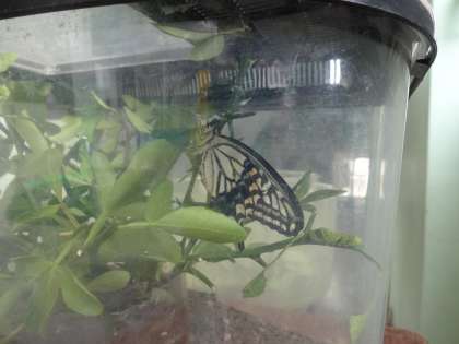 今朝、蛹(さなぎ)からアゲハが羽化しました。待ちに待ったアゲハの誕生です。