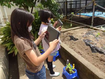 まず、クロームブックで写真を撮りました。次に、写真の回りに付箋を貼り(クロームブック上で)、観察して気付いたことなどを入力しました。