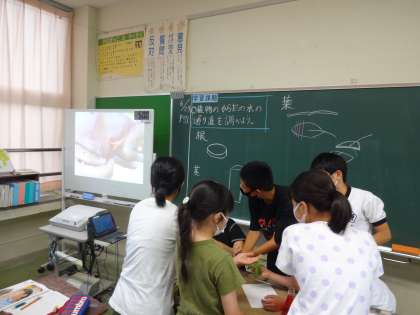 今日は、それぞれの部分を切って、中の様子を観察しました。植物のからだの通り道が分かりました。