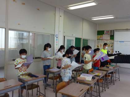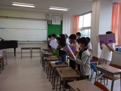 区域連合音楽会で発表する「ひろい世界へ」の練習を始めています。まだ始めたばかりですが、きれいな歌声を出せるようになっています。さすがは、5年生です。