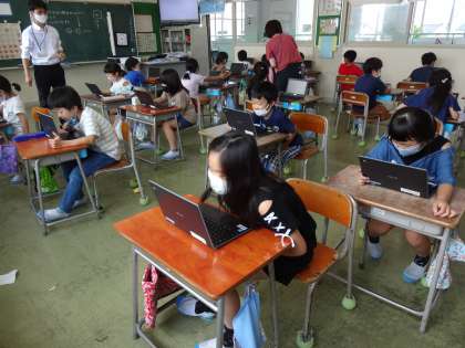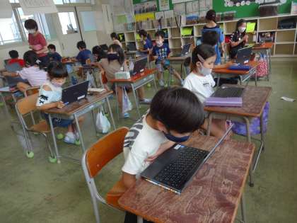 2年生は、まだローマ字を習っていないので、音声入力の方法を学びました。