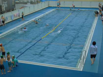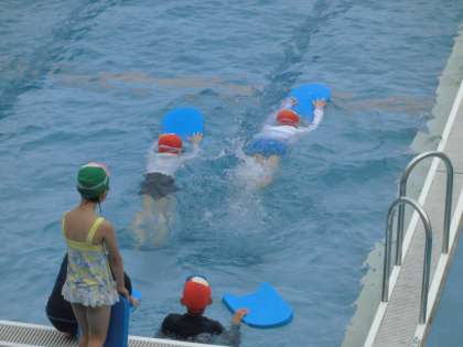 そのうちの1つのグループでは、バタ足、息継ぎの際に、注意するポイントを学びました。