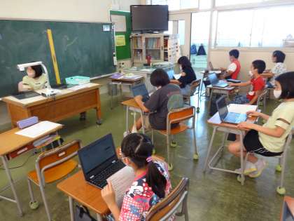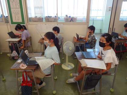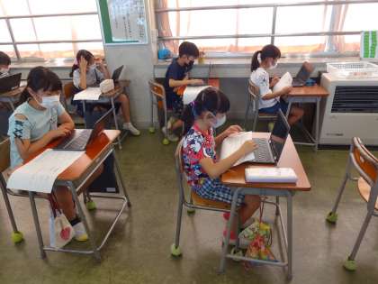 また、夏休みの宿題の一つに、クロームブックを活用して、写真日記を作成するのがあります。先生の説明プリントに沿って、どのように操作するのかを学びました。