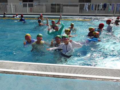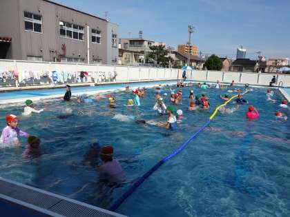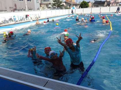 約70名の子供たちは、暑さを忘れたかのように、元気よくプールへ入って楽しく過ごしました。
