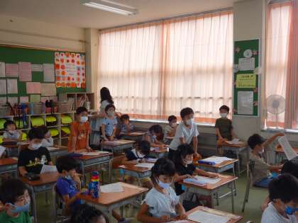 10月の学習発表会では、1年生は、『「あいうえ あさがお おうこく」と「さしすせ さつまいも おうこく」のものがたり』の劇を発表します。