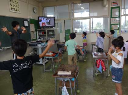 学習発表会で披露するダンスの動画です。始業式には視聴しましたが、今日は、見よう見まねで踊ってみました。