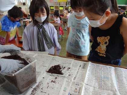 1学期に教室で飼っていたカブトムシが卵を産み、先生が、家へ持ち帰って育てていました。