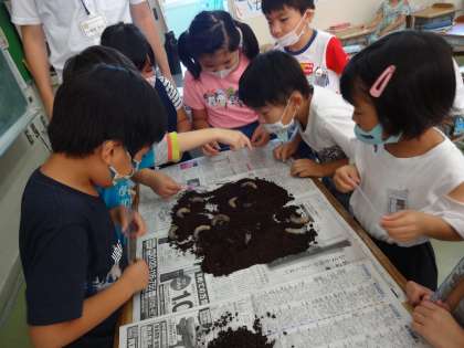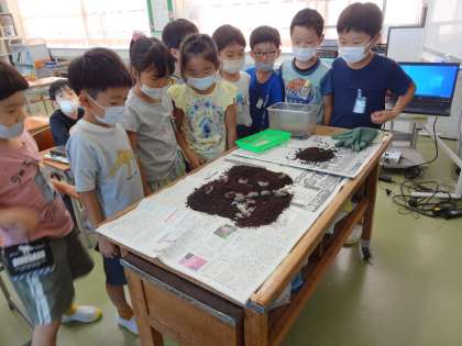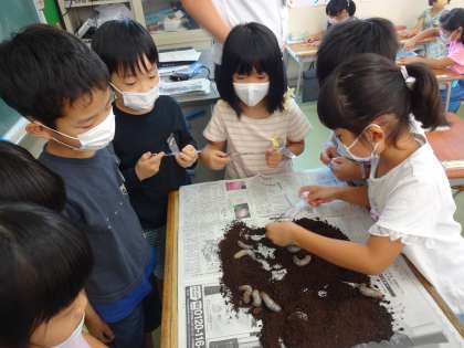 校長先生が、カブトムシの幼虫を見せてくださいました。