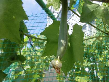 久しぶりにヘチマの観察をしました。しばらく見てないうちに、随分成長し、実が7個できていました。雌花の写真もとることができました。これからヘチマがどのくらい大きくなるのか楽しみです。