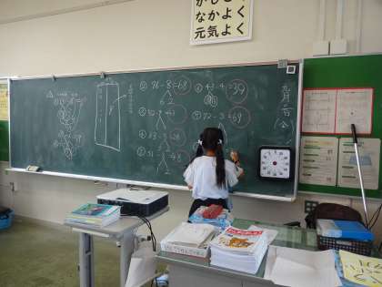 「76−8=?」「サクランボ計算をして、8を2と6に分けて・・・。」