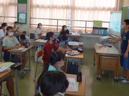みんな上手に英語で伝えます。数年前の小学生では、やっていなかったことです。学んだことが身に付いています。