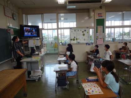 そして、動画の内容を基に、英語でクイズを出されました。ゲームを通して、新しいALTの先生のことを知ることができました。